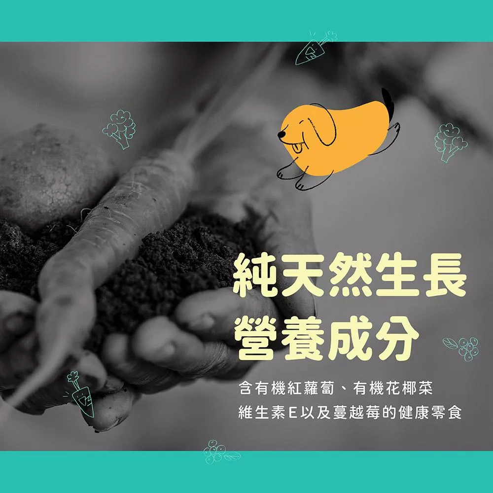 成分:雞胸肉、純水、木薯粉、有機紅蘿蔔、有機花椰菜、蔓越莓、維生素E